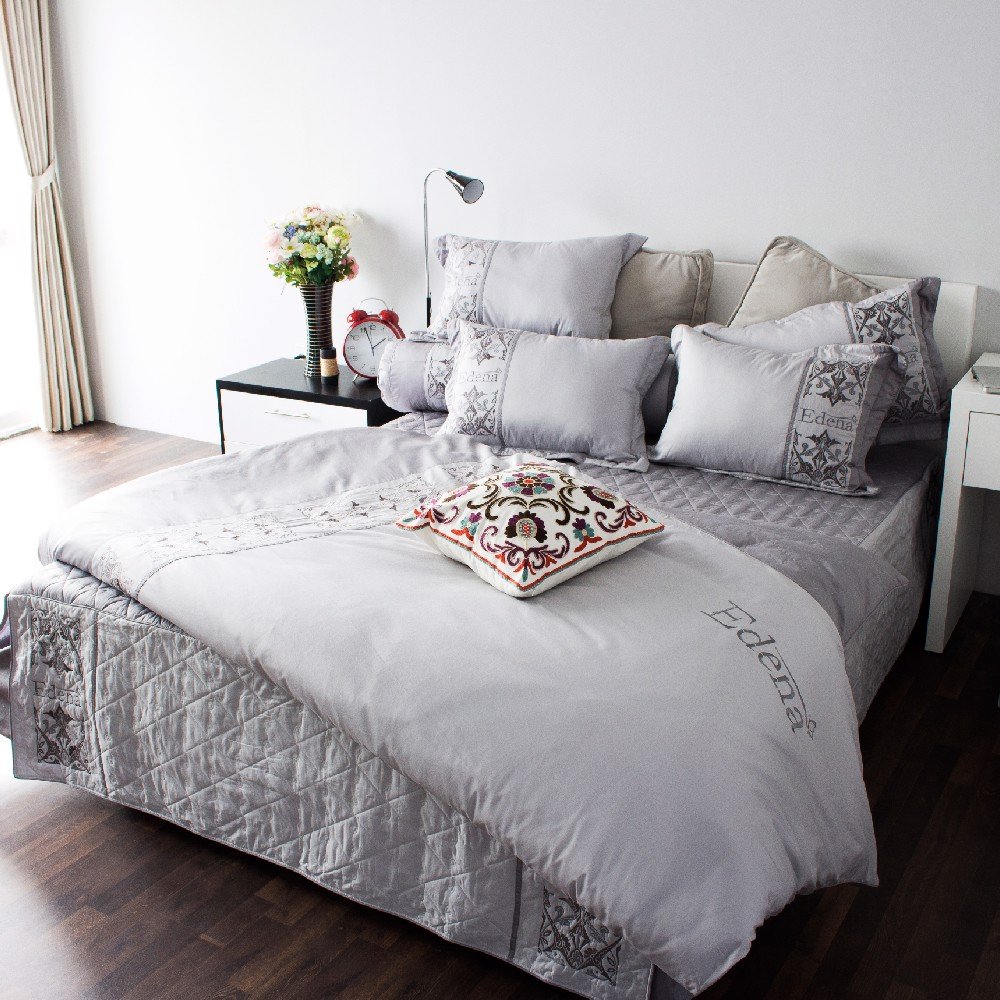 Tông màu nhã nhặn kết hợp cùng họa tiết hoa văn thêu tinh tế từ bộ sản phẩm Edena Solid mới của chăn ra gối nệm Edena sẽ góp phần tô điểm cho không gian phòng ngủ thêm sang trọng, hiện đại. Bộ sản phẩm thích hợp cho những tín đồ theo phong cách thời thượng, lịch lãm, chuẩn khách sạn 5 sao.