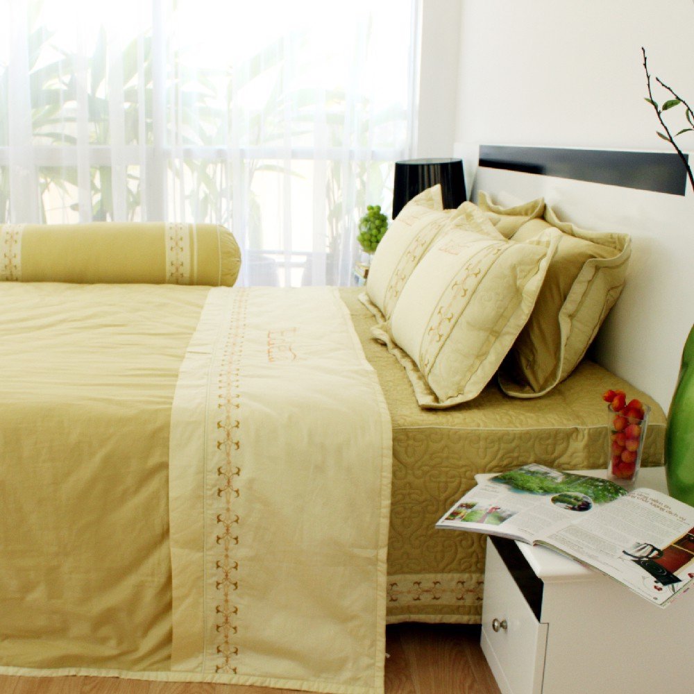 Bộ sản phẩm được may từ vải cotton đặc biệt với chất liệu 100% cotton nhập khẩu Hàn Quốc, mật độ sợi 300 sợi/inch vuông cho bề mặt vải sự chắn chắn và mềm mịn, do mật độ sợi cao nên vải không bị rạn sau thời gian sử dụng. Các hoa văn tạo nên trên bề mặt vải không dùng công nghệ in mà là do sự sắp đặt các sợi chỉ với nhau tạo nên hoa văn chìm và ẩn, làm nên sự đặc biệt cho chất liệu.