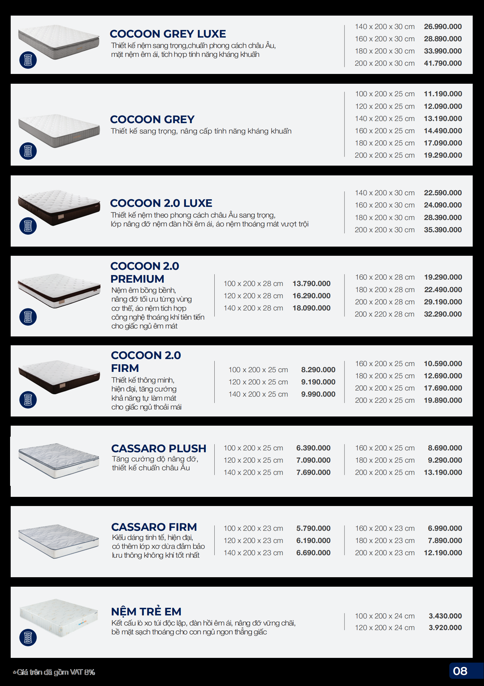 | 180 x 200 x 25cm | 17,090,000 | 14,527,000 | 13,801,000 |