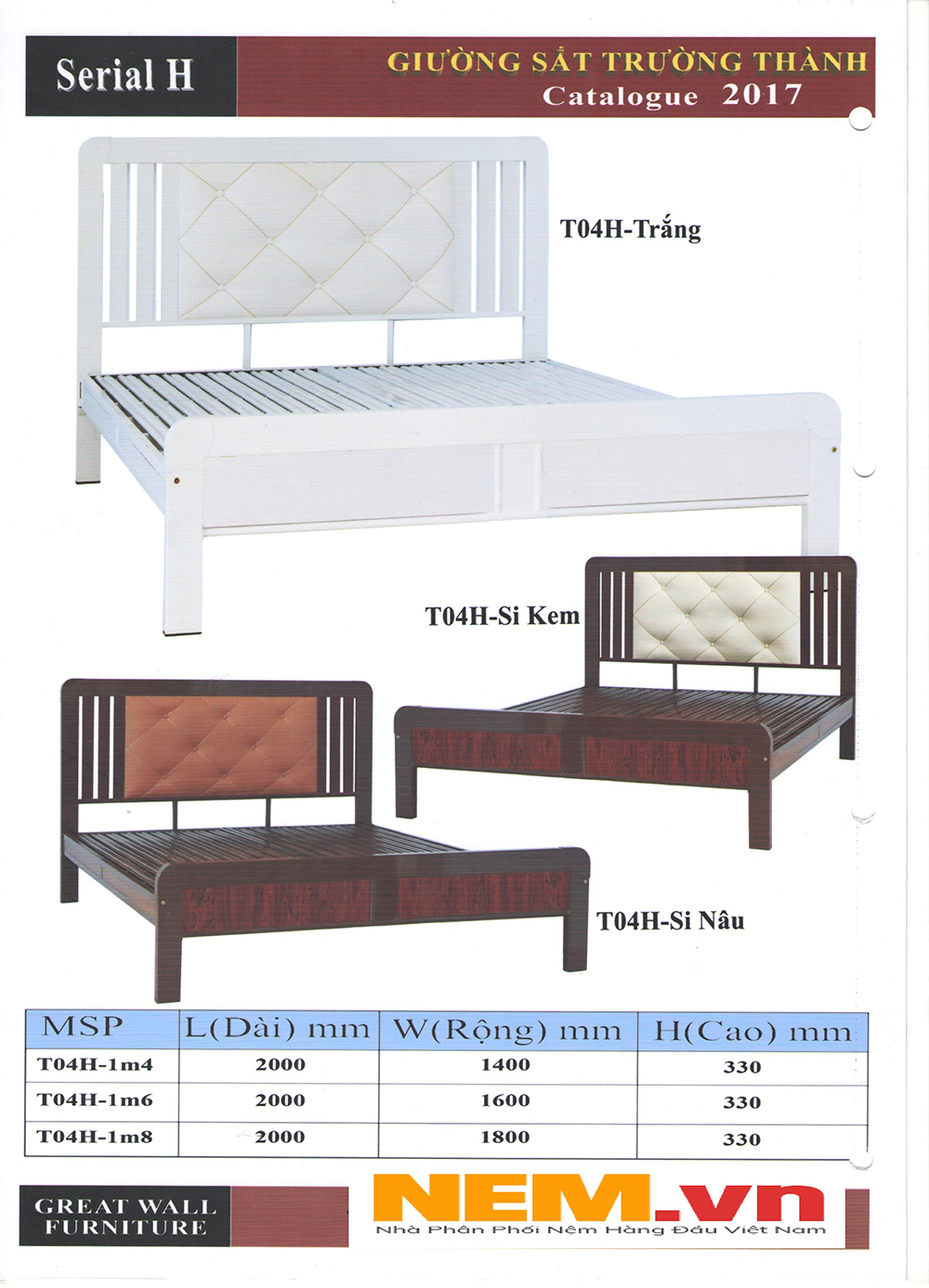 www.thegioigiuongnem.com là nhà phân phối các loại giường sắt Trường Thành đủ mọi kích cỡ, kiểu dáng và màu sắc phù hợp với mọi gian phòng. Bạn có thể lựa chọn giường sắt Trường Thành cho căn phòng bày trí sang trọng hiện đại đến các không gian cổ kính, trang trọng. Giường sắt Trường Thành tôn thêm vẻ đẹp cho ngôi nhà bạn.