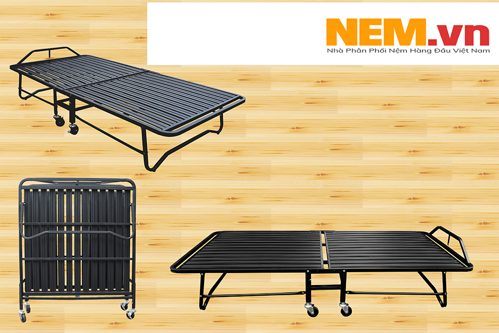 Giường sắt xếp Trường Thành dễ dàng di chuyển bằng 4 bánh xe, rất tiện nghi, có thể xếp lại cho gọn khi không sử dụng.