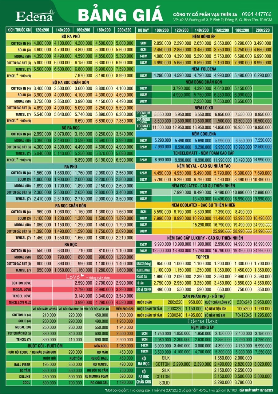 Bảng Giá Khuyến Mãi Nệm Bông Ép Cao Cấp Gấp 2 Edena - Foldena ( 28.02.2024 )
