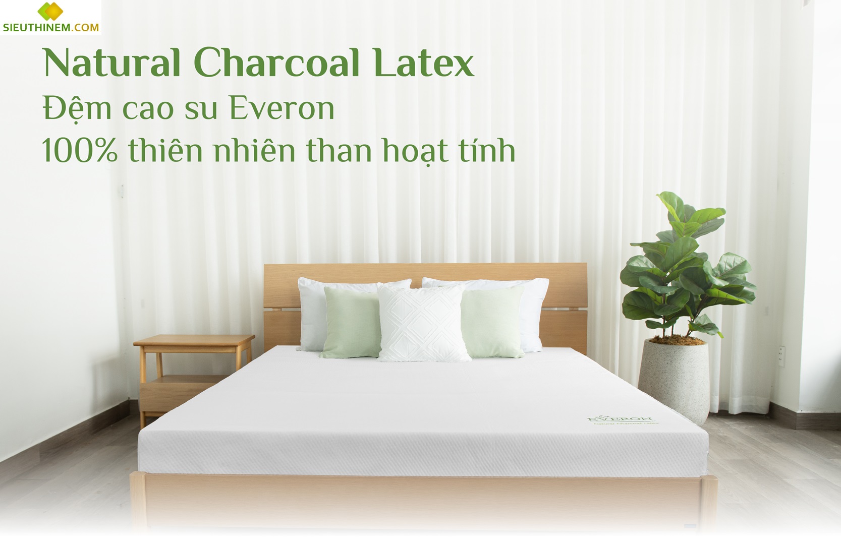 Nệm cao su Everon 100% thiên nhiên than hoạt tính - Natural Charcoal Latex sử dụng nguyên liệu 100% cao su thiên nhiên, kết hợp với than hoạt tính: