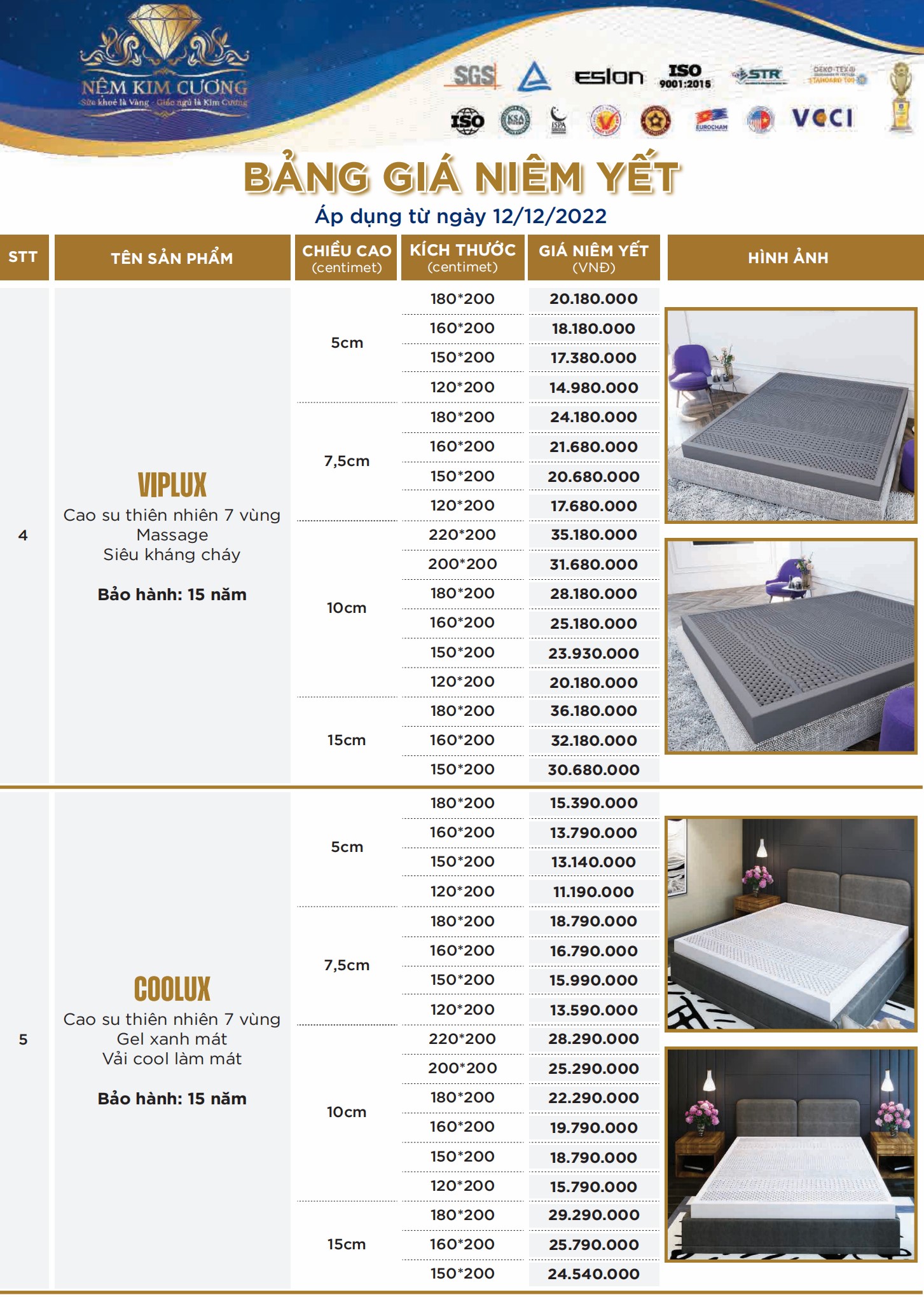Bảng Giá Nệm Cao Su Kim Cương Massage - Viplux 7 Zone ( 18.01.2024 )