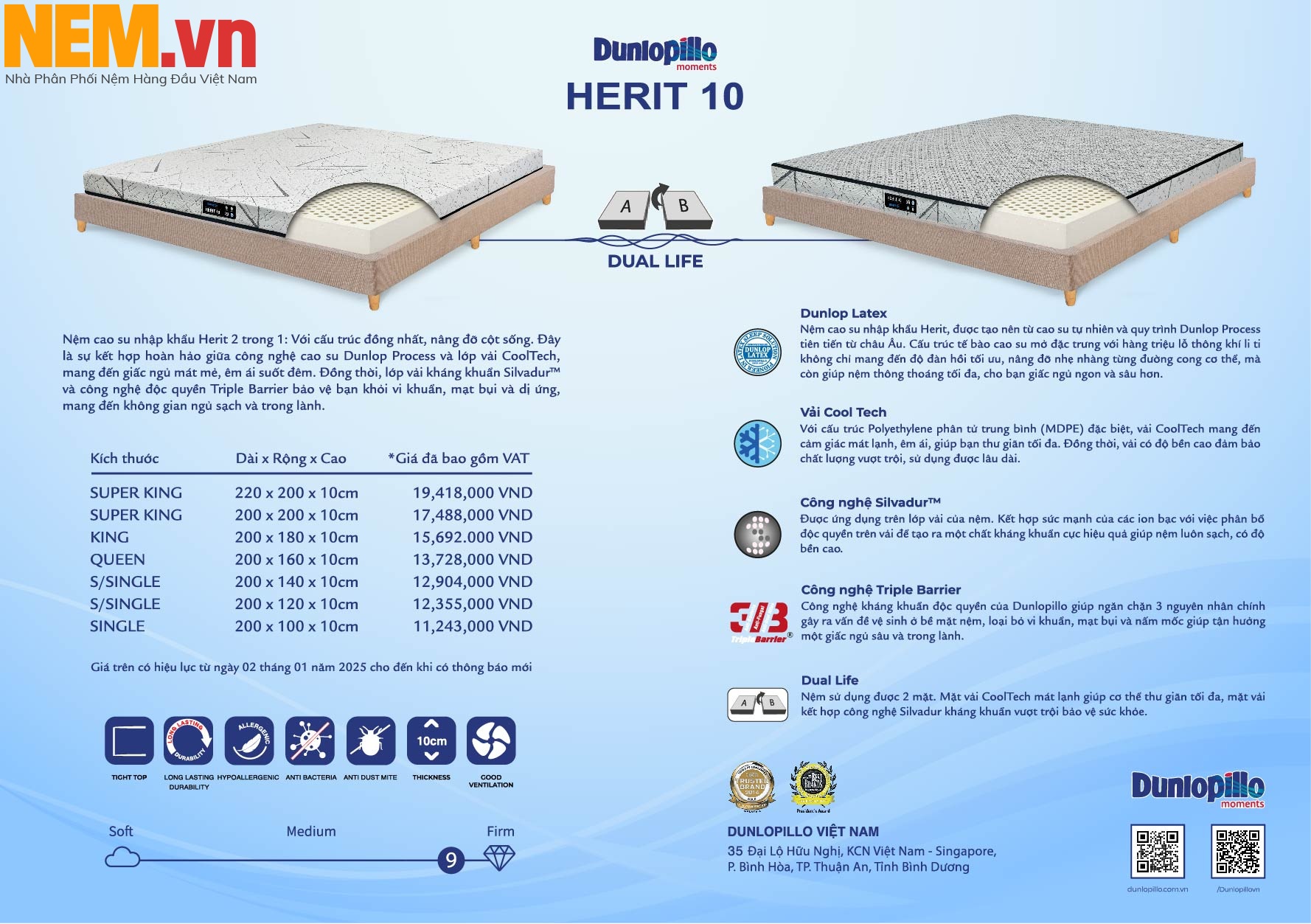 Bảng Giá Nệm Cao Su Nhập Khẩu Dunlopillo - Herit ( 02.03.2025 )