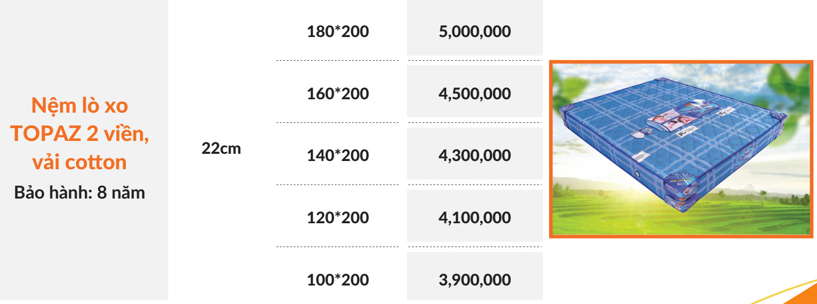 Bảng Giá Nệm Lò Xo Topaz 2 Viền ( 08/04/2025 )