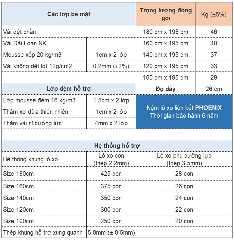 Nệm lò xo Vạn Thành - Phoenix mang lại sự nâng đỡ và giúp phân bổ một cách hợp lý trọng lượng cơ thể, chăm sóc tốt cho hệ thống xương lưng và cột sống của bạn