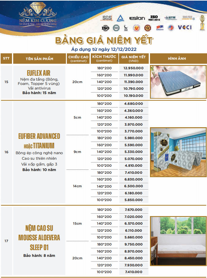 | 220 x 200 x 14cm | 10.190.000 | 7.439.000 | 6.695.000 |