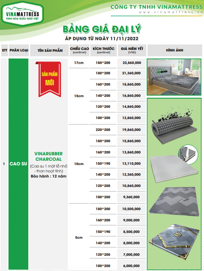 Bảng Giá Vinarubber Charcoal - Nệm Cao Su Than Hoạt Tính VinaMattress ( 15.11.2022 )